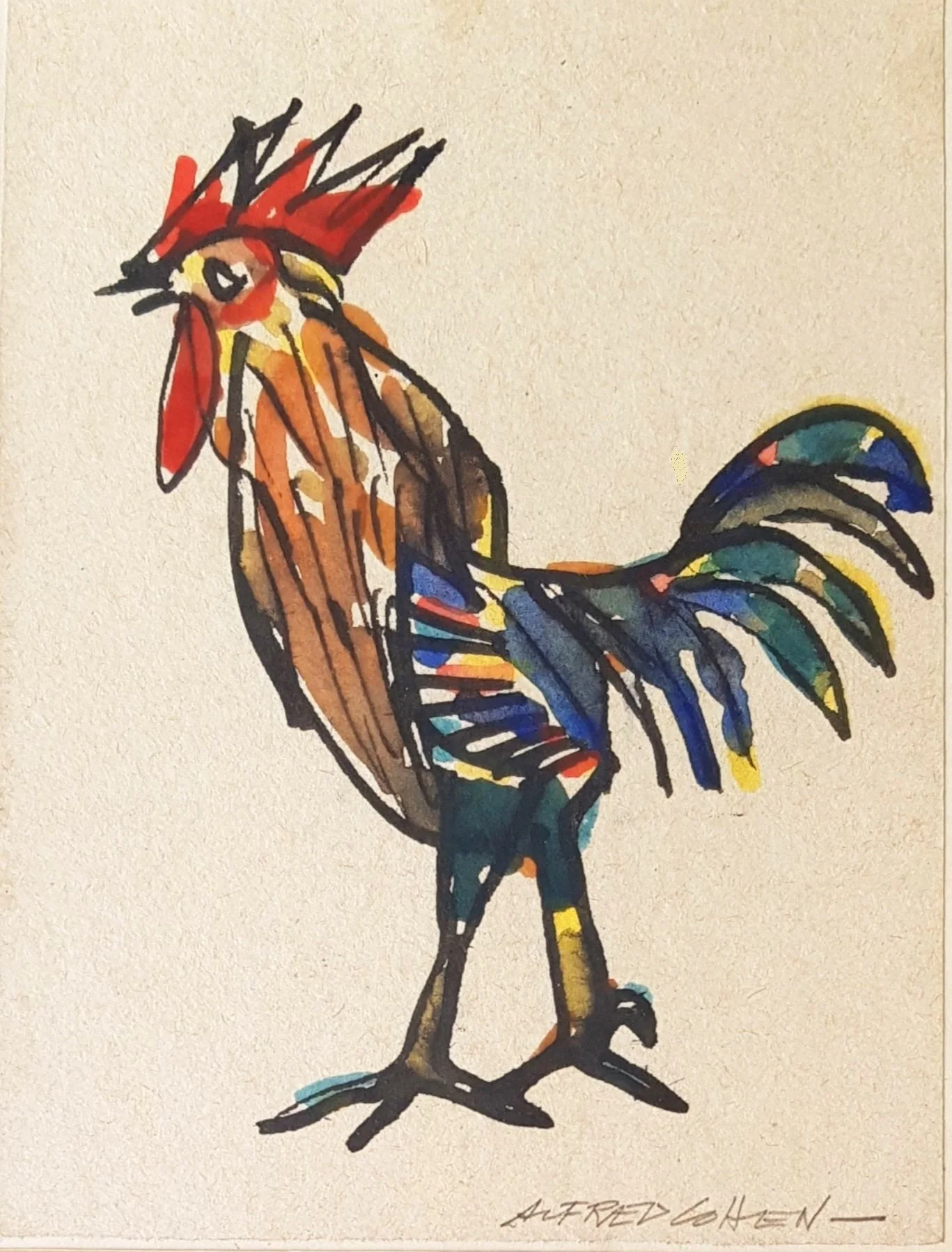 As a young man Alfred Cohen went to Pamplona to see the bulls run. He met Ernest Hemingway there. This lively exhibition at the new Alfred Cohen Museum starts with the magnificent lithograph of a dying bull from the 1950s. It follows his extraordinary pictures of animals through his art over five decades, and brings out their importance to his vibrant, joyful work.